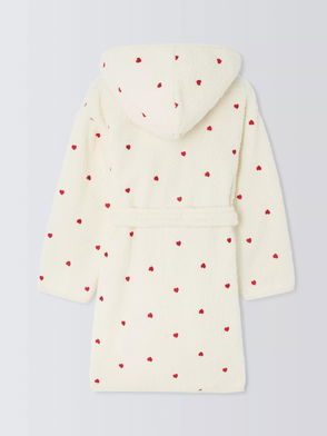Kids' Mini Hearts Fleece Bath Robe, Off White