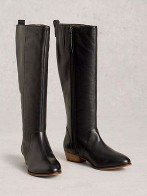 Willow Wide Fit Leather Knee High Boots, Pure Black