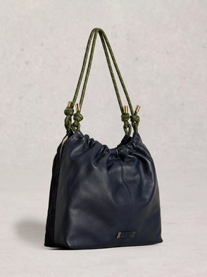Callie Studded Pure Leather Shoulder Bag, Midnight Blue