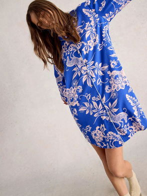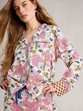 Nina Trees & Birds Button Through Pyjama Top, Natural/Multi