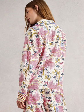 Nina Trees & Birds Button Through Pyjama Top, Natural/Multi
