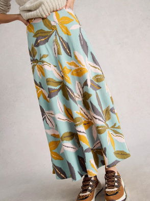Elle Abstract Linen Blend Skirt, Navy/Multi
