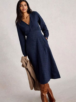 Lucy Corduroy V-Neck Dress, Dark Navy