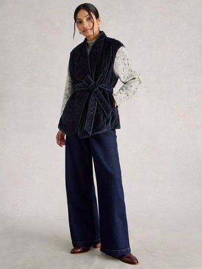 Gigi Velvet Quilted Gilet, Dark Navy