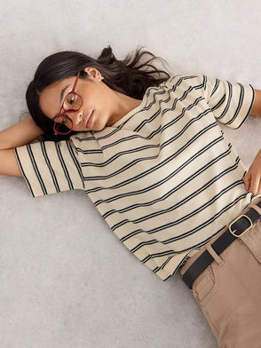 Katya Stripe Boxy T-Shirt, Ivory/Multi