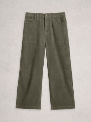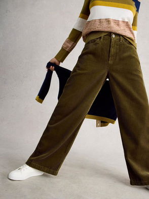 Ayla Wide Leg Corduroy Trousers, Khaki