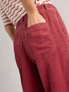 Belle Mid Rise Wide Leg Cotton Blend Corduroy Trousers