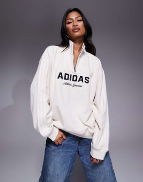 1/4 Zip Sweatshirt In Cream With Front Graphic