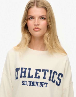 Athletic Essentials Applique Crew Sweatshirt In Desert Bone Off White