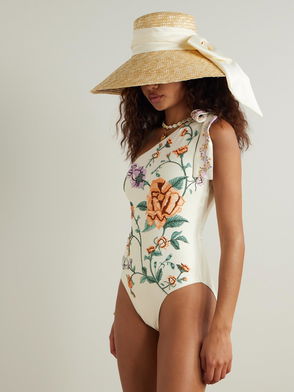 Remedios Chinesis One-shoulder Embellished Embroidered Recycled Swimsuit