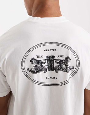 2 Horse Logo Back Print Vintage Oversized Fit T-shirt In White