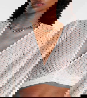Open-knit Halterneck Lamé Crop Top