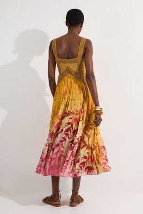 Capsule Chiffon Maxi Dress With Godetes In Yellow Floral Print