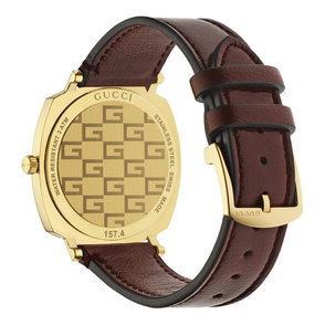 Ya157411 - Grip Yellow Gold Pvd, 3 Windows Indicating Hour, Minute & Date, Bordeaux Leather Stra