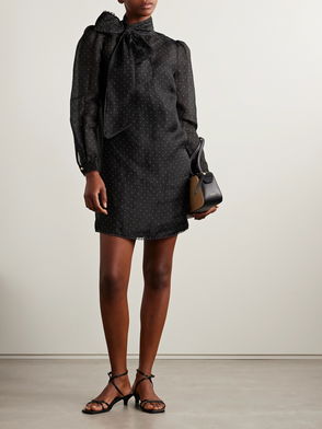 Pussy-bow Lace-trimmed Polka-dot Linen And Silk-blend Organza Mini Dress