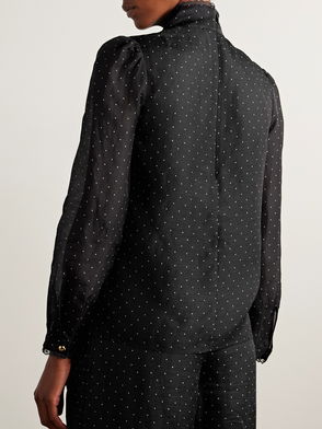 Pussy-bow Lace-trimmed Polka-dot Linen And Silk-blend Organza Blouse