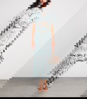 Wanderlust Billow Puffed-Short-Sleeves Silk Midi Dress