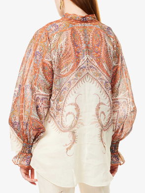 Crochet-Paneled Ruched Linen And Silk-Blend Top
