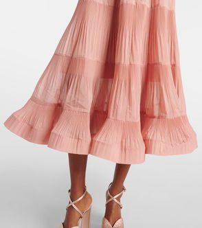 Pleated Tiered Polka-dot Organza Midi Dress