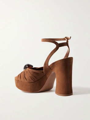 Gleam Embellished Gathered Suede Platform Sandals