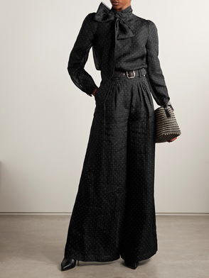 Pussy-bow Lace-trimmed Polka-dot Linen And Silk-blend Organza Blouse