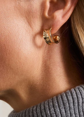 Flower Petal & Faux Pearl Drop Earrings, Gold/White