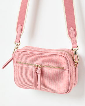 Nora Pink Corduroy Zip Front Crossbody Bag