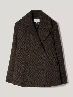 Sally Wool Blend Herringbone Check Belted Overcoat