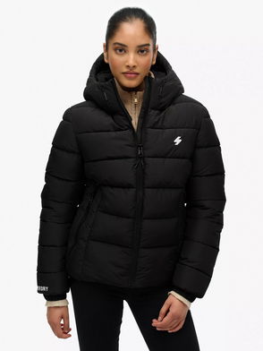 Hooded Spirit Sports Puffer Jacket, Black