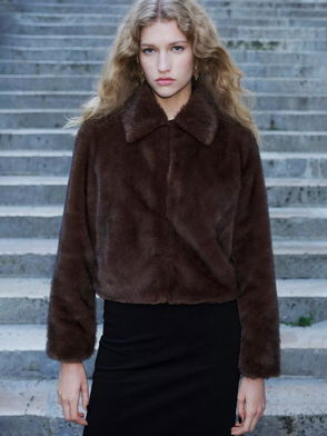 Bruna Faux Fur Jacket, Brown