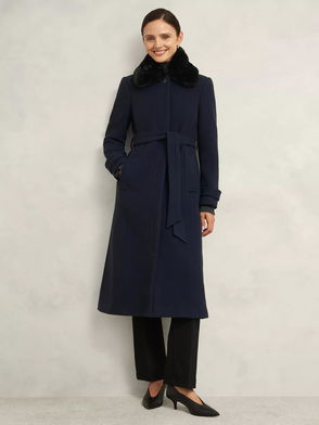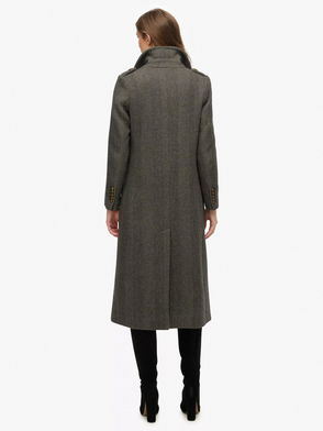 Double Breasted Longline Wool Blend Overcoat, Dark Yellow