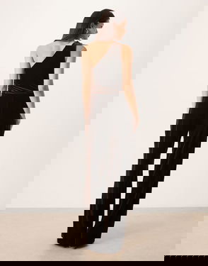One Shoulder Velvet Jumpsuit In Brown