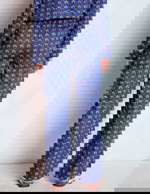 Cotton Pyjama Trousers-Bright Blue, Woodblock Flower