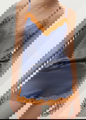 Cotton Pyjama Shirt-Bright Blue, Woodblock Flower