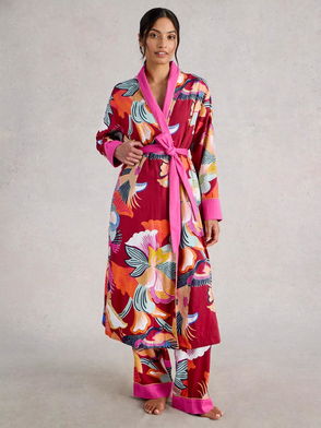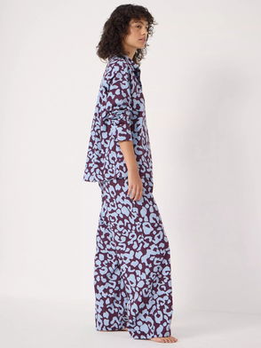 Floral Tiger Button Through Long Pyjama Set, Purple Sage