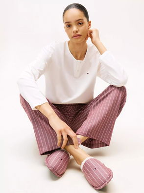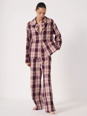 Essential Flannel Pyjamas & Slippers Gift Set, Ecru/Rouge