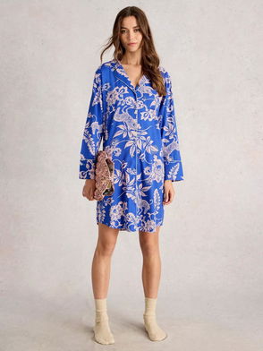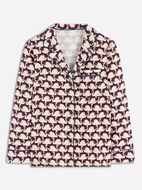 Nina Trees & Birds Button Through Pyjama Top, Natural/Multi