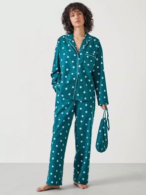 Poppy Star Button Through Long Pyjama Set, Dark Blue