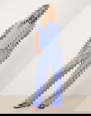 Pull On Cotton Trouser Co-ord In Blue And Pink Stripe