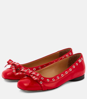 Bow-detail Faux Leather Ballet Flats