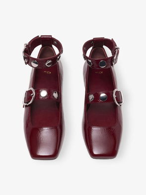 F-MODE Flow Crystal-Strap Quilted Mary Janes Canvas Polyester/Suede/Rubber