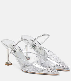 Minette Leather-Trimmed Crystal-embellished Mesh Pumps