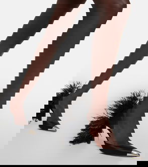 X Sergio Rossi Amazona Feather-trimmed Denim Pumps
