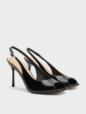 Patent Stiletto-Heel Pointed-Toe Slingback Pumps