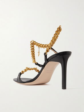 Zenith Chain-embellished Leather Slingback Sandals