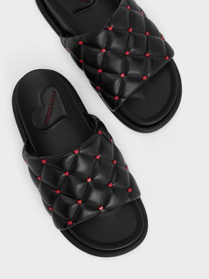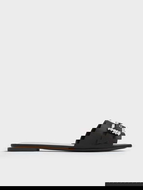 Recycled Polyester Gem-Buckle Square-Toe Slide Sandals