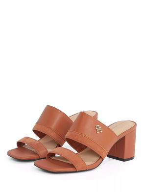 Laler Leather Double Strap Buckle Padded Sandals, Tan
