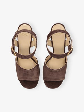 Suede Buckle-Strap Slip-On Sandals In Chocolate